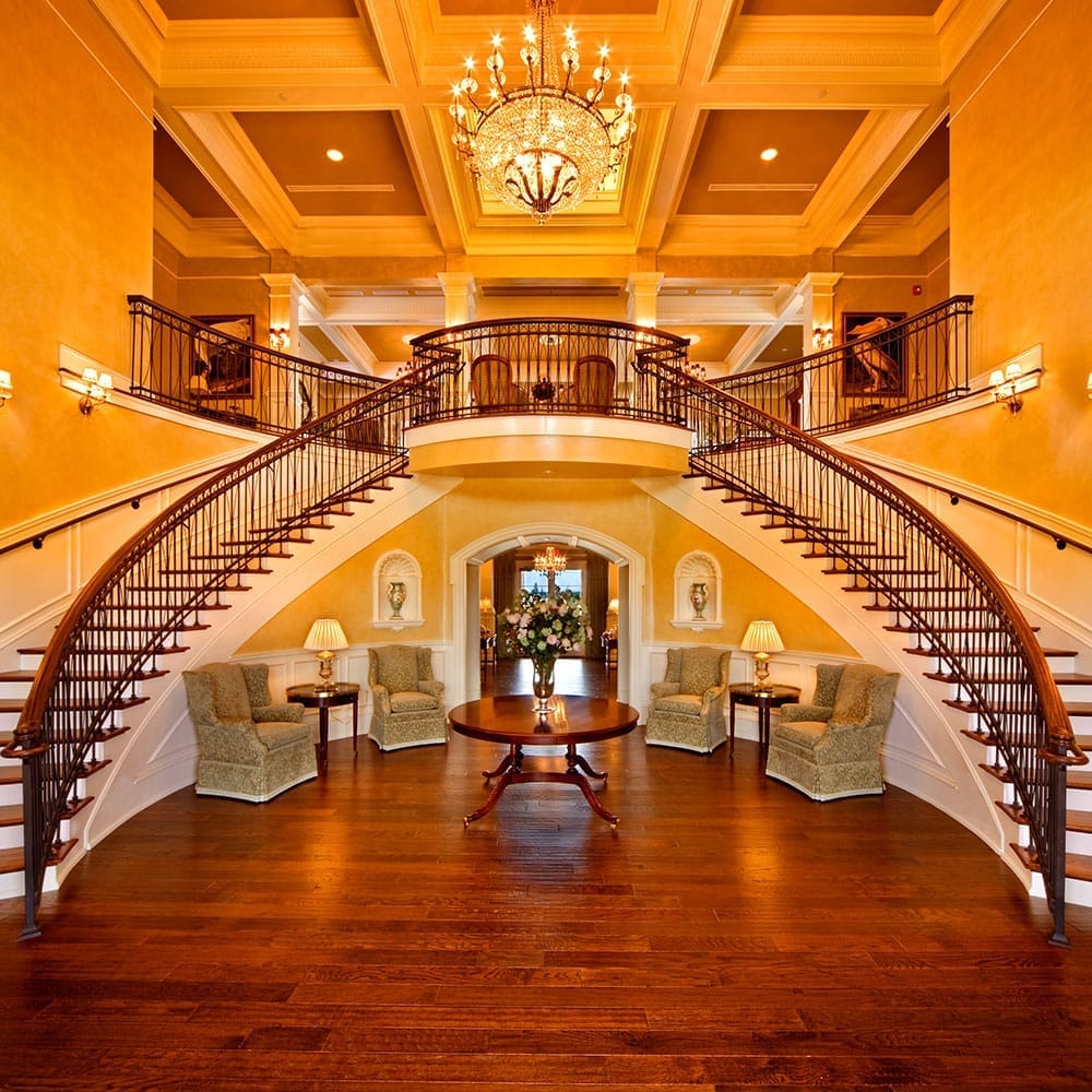 At the heart of the community is a magnificent 10,000 square foot clubhouse, tastefully designed in the luxurious Greek revival style of Southern antebellum architecture, featuring stacked wrap-around porches and great rounded porticos with commanding views over the water and the beautifully landscaped 287-acre grounds. The grand dual staircases in the foyer of this impressive building greet you like a warm Southern embrace into a society of privilege and decorum.