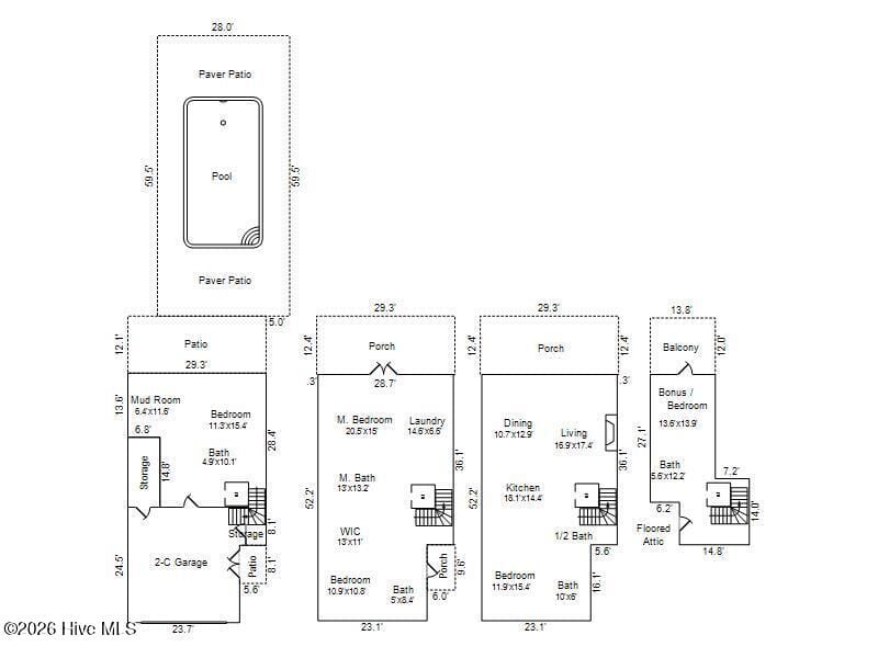 The home’s curb appeal is undeniable, featuring a stone paver driveway, mature landscaping, an inground pool, and expansive porches designed to capture breathtaking water views.